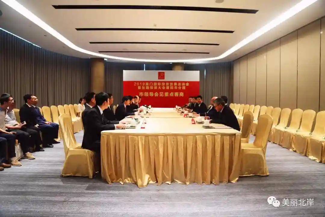 在2019厦门国际投资贸易洽谈会暨丝路投资大会莆田市分团会场,市长李建辉会见了参会的北岸重点客商,就深入推进项目对接合作等事宜进行洽谈交流。副市长胡国防,党工委书记林修岚,党工委委员、管委会常务副主任郑新群,管委会副主任陈群等一同参加。