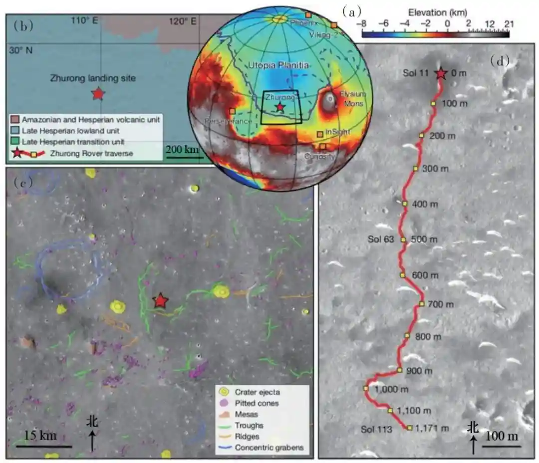 探索火星的地下结构和物性信息是研究火星地质、水文演化和古气候变化的关键,一直是火星探测的主要任务之一。乌托邦平原是火星最大的撞击盆地,曾经可能是一个古海洋,预示着火星早期可能存在过宜居环境。2021年5月15日,中国“天问一号”携带的“祝融号”火星车在乌托邦平原南部成功着陆,开启了人类对该地区地下结构的首次原位雷达探测。