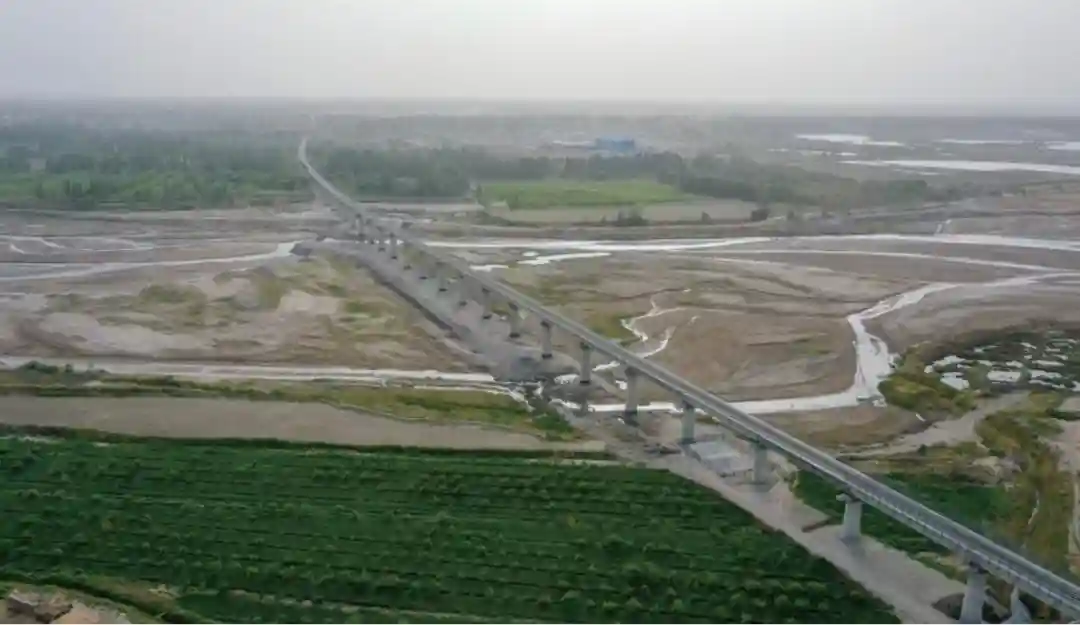 2022年6月17日,和田至若羌的铁路(简称“和若铁路”)正式建成通车(图25为和若铁路车尔臣河特大桥)。和若铁路的开通,标志着世界首条环沙漠铁路(环塔克拉玛干沙漠铁路,以下简称“环沙漠铁路”)全线贯通。