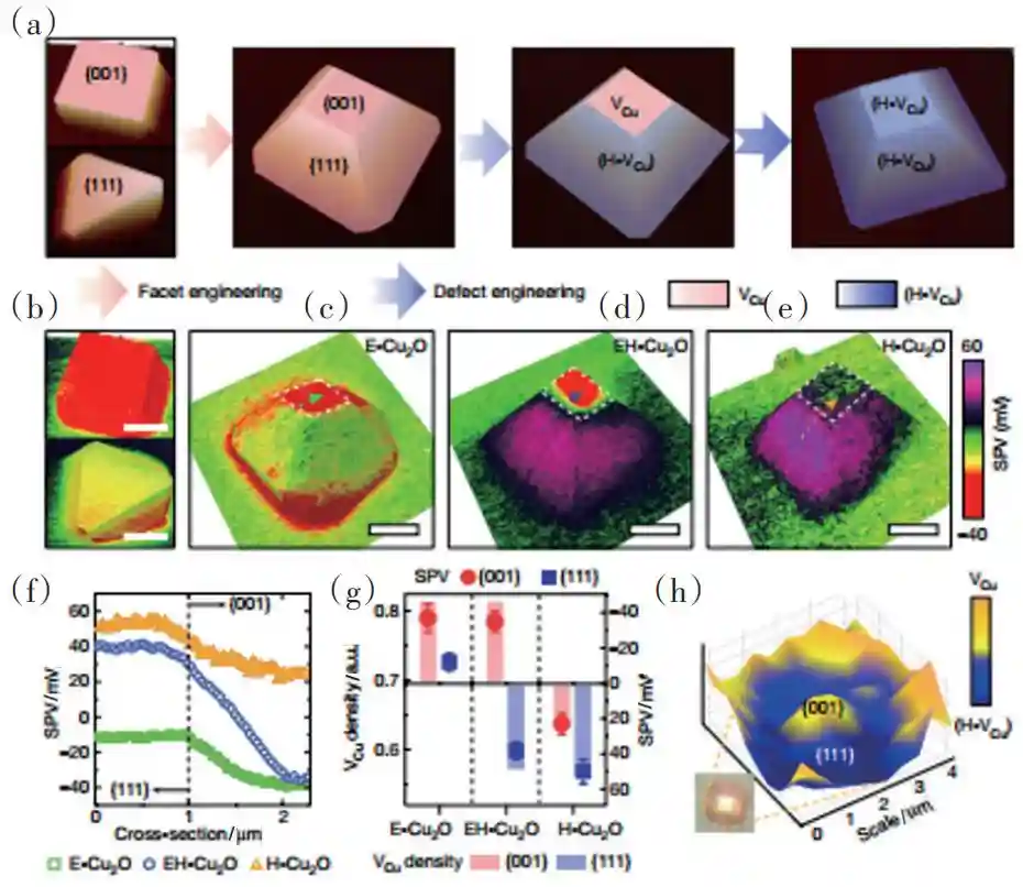 中国科学院大连化物所李灿、范峰滔团队通过集成3种先进的表征技术和理论模拟,包括时间分辨光发射显微镜(飞秒到纳秒)、瞬态表面光电压光谱(纳秒到微秒)和表面光电压显微镜(微秒到秒)在时空全域接力赛式地追踪了纳米单颗粒光催化剂中光生电荷在分离和转移演化的全过程,发现光催化剂中普遍存在的各向异性晶面和缺陷态直接影响光生电荷动力学行为;光生电子在亚皮秒时间尺度内经过准弹道传输机制完成晶面间超快传输,表现出量子特征,区别于经典电磁学理论预测的漂移扩散机制;而光生空穴在纳秒到微秒尺度演化,实现在不同晶面上的分离,揭示了光催化剂在微纳米尺度上时空各向异性的电荷转移机制,这是半个世纪以来光催化基础研究的新发现(图9)。该工作在单粒子尺度上高时空分辨追踪电荷转移和分布,建立了光催化过程的全新研究技术和理论方法,将极大促进对光催化领域基础科学的发展,为根本上解决光催化微观过程的瓶颈问题以及为发展高效光催化剂带来希望。