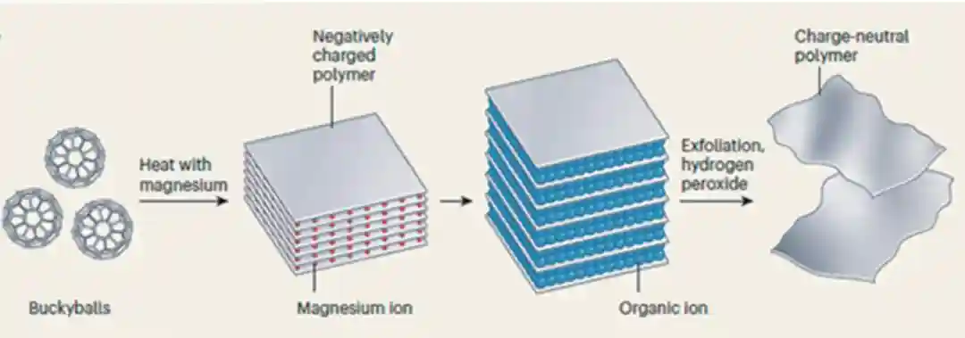 中国科学院化学研究所郑健团队开发了一种制备新型碳材料的合成策略,成功制备了单层二维聚合单晶,并获得了清晰的价键结构。通过调节Mg和的比例,在常压条件下制得了2种紧密排列的准六方相和准四方相的Mg插层聚合物单晶。通过有机阳离子切片策略,使用四丁基水杨酸铵作为切割试剂,从准六方相结构中剥离得到单层聚合物(图18)。单晶XRD和扫描隧道电子显微镜表征结果表明,之间通过碳-碳桥连单键和[2+2]环加成的四元环桥连键,在平面内连接形成了一种全新的二维拓扑超结构。单层聚合具有较高的结晶度和良好的热力学稳定性,并具有适度的禁带宽度,这种利用零维团簇代替碳原子构筑二维拓扑结构的方法,为新型碳材料的探索提供了新的思路。