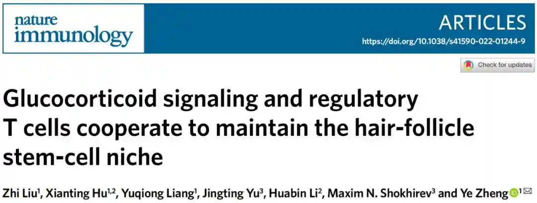 国际知名期刊NatureImmunology刊登了的一项研究,告诉我们:在皮肤毛囊损伤的情况下,诱导产生的糖皮质激素可以促进调节性T细胞(Treg)分泌生长因子TGF-β3,进而促进毛囊干细胞增殖以及毛发再生。研究论文的题目为:GlucocorticoidsignalingandregulatoryTcellscooperatetomaintainthehair-folliclestem-cellniche(糖皮质激素和调节性T细胞协同维持毛囊干细胞微环境)的研究论文。