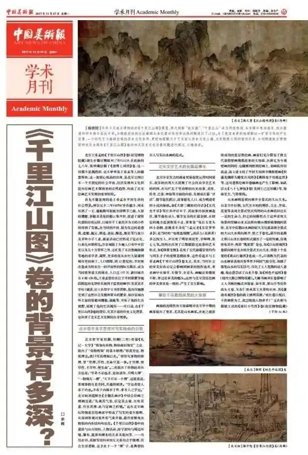 事实上,早在2017年9月故宫博物院举办《千里江山图》展览,“千里江山”就已经成为网络热词,各类媒体竞相追逐,相关报道和学术推介层出不穷。现象级综艺节目《国家宝藏》中,故宫博物院首先登陆荧屏的国宝,同样是旷世名作《千里江山图》。值此元宵节到来之际,为了使读者更好地理解它的产生背景,一个时代艺术高峰出现的历史文化条件,更好地理解天才艺术家与历史文化土壤、文化制度之间的密切关系,现重新放送故宫博物院研究员余辉就《千里江山图》卷的相关历史文化背景问题的阐述,以飨读者。