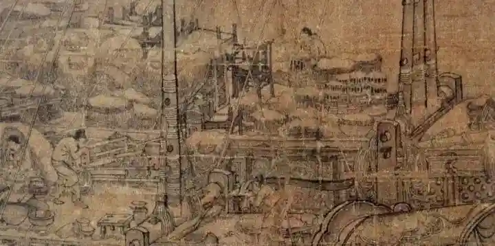 首先不能忽视的是王希孟在开封生活的社会背景。神宗元丰二年(1079)导洛通汴,河水深到了一丈,通航期可提前至清明节之前,大量的漕船、客船及其他民船云集开封,促进了商贸机器的昼夜运转,以城市手工业经济为主的小作坊得到了发展。在当时的开封,最为发达的是建筑、造船、航运、锻造、食品、酿造、旅店等行业以及多种小手工业,商业活动已经形成了定点化、行业化和规模化。汴京城除了本地人口和中央官吏以及几十万禁军之外,还汇集了来自鲁闽浙赣等地的求学者、商贾,更多的是从农村大量涌到城市里的雇工,人口剧增,到12世纪初,开封被改造成为坊市合一的开放性的国际大都市,成为当时世界最大的城市,人口达137万,新旧城共有8厢120坊。王希孟曾经在位于开封最繁华地段附近的龙津桥东南国子监里的画学(皇家美术学校)就读,后又在禁中文书库供职,他深深地感受到了这些社会发展所带来的繁荣,如汴京城内外大量的客船和漕船、商旅等,开拓了他的生活视野、延展了他的生活阅历……可以说,在《千里江山图》卷的背后,有其丰富的历史文化背景,也体现了北宋艺术发展的自身规律。
