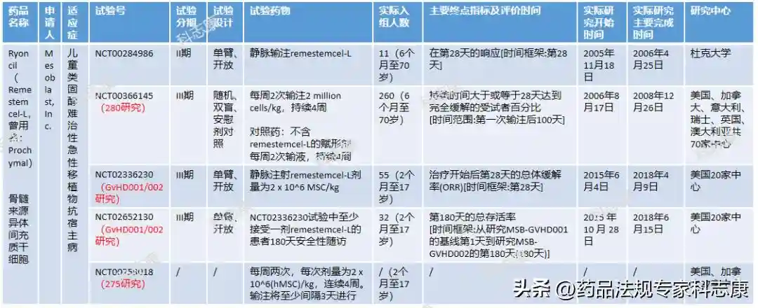 尽管Remestemcel-L之前已在加拿大、日本等多国获批上市,但在美国FDA的申请上市的道路可谓坎坷曲折。2020年4月,FDA已受理Remestemcel-L的BLA,同时授予该申请优先审评资格。虽然Remestemcel-L在2020年8月获得美国FDA肿瘤药物咨询委员会(ODAC)9:1的压倒性支持,但FDA最终驳回了Mesoblast的上市文件,拒绝批准其上市。拒绝的理由是:其采用的是单臂试验而不是随机试验,建议至少在成人和/或儿童中进行一项随机对照试验,以此作为疗效的补充信息。