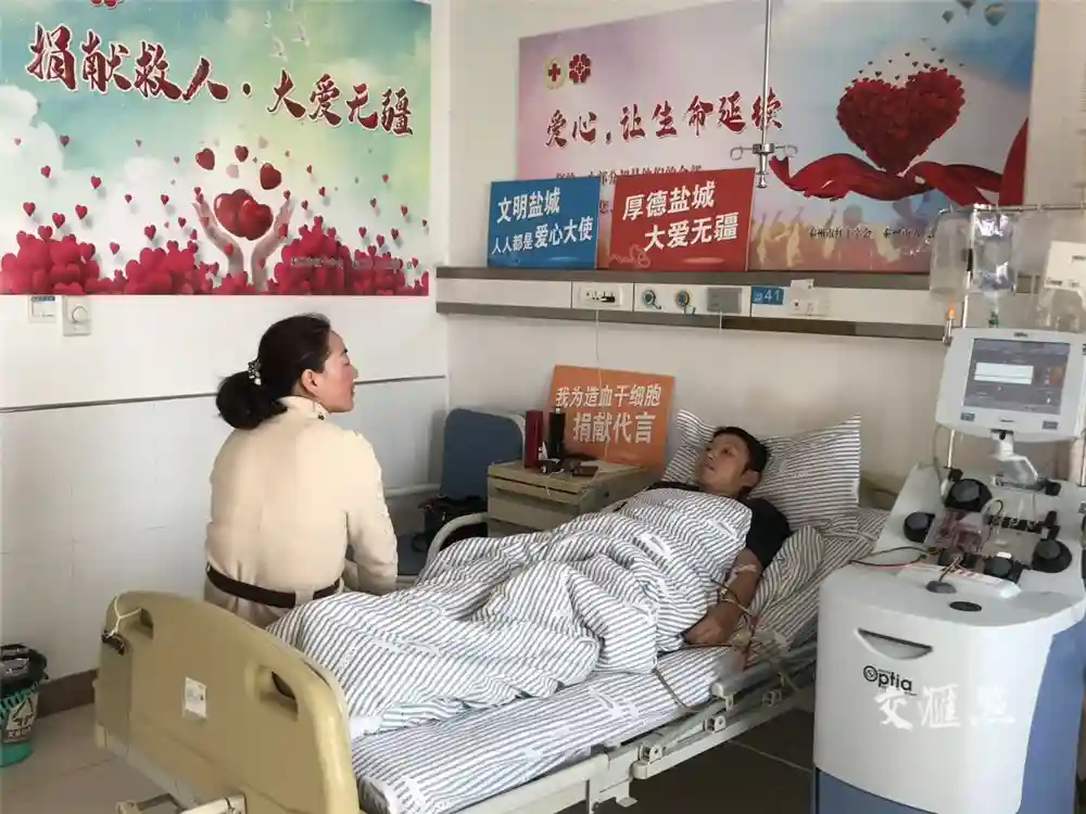 三年后,十万分之一的概率再次降临到这个家庭。2020年3月16日,李海华接到通知,与一名2018年出生的患有地中海贫血的男孩初配成功,HLA分型10个点位全相合。2020年4月21日通过高分辨检测;2020年10月体检合格,进入待捐状态;2020年12月31日,陈海华接到了捐献通知书,他在捐献同意书上郑重地签下了名字;2021年1月7日,妻子陈国莲陪着李海华入住泰州市人民医院,在4天的动员剂注射后,1月12日正式采集捐献。