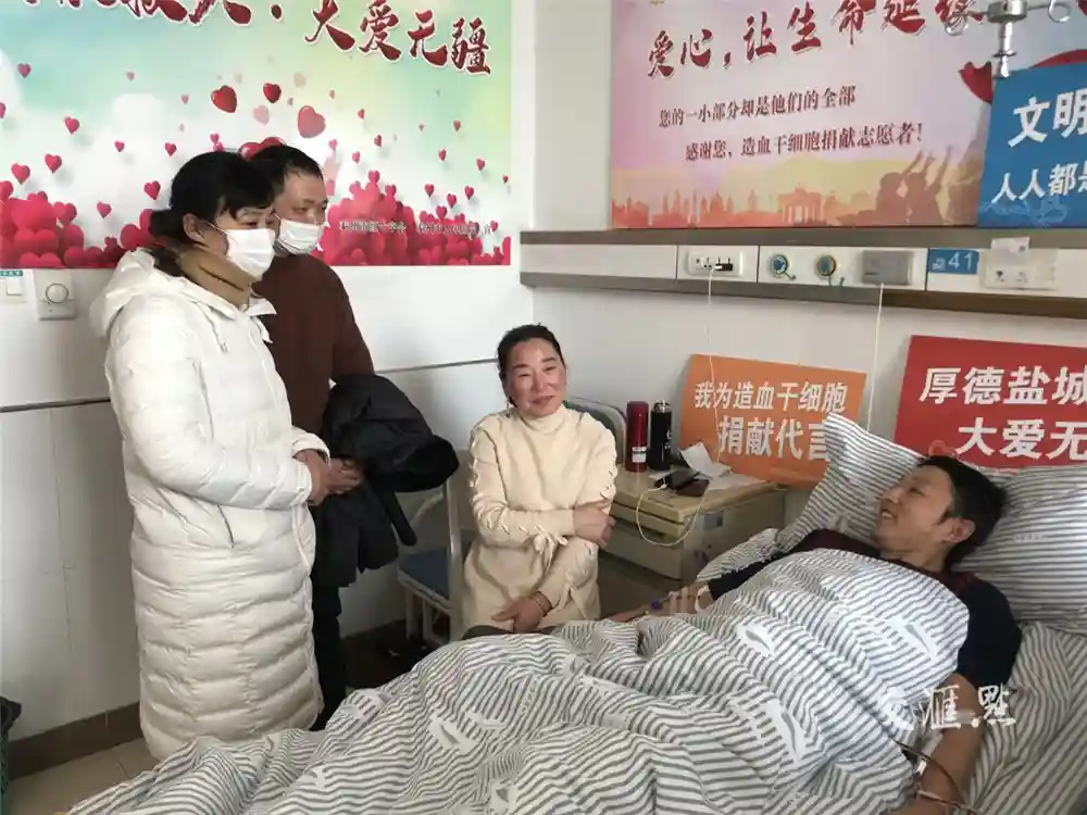 捐献现场,全国第一对夫妇捐献者,泰州市民石云根、张冬梅特意赶来看望李海华。两对谱写“大爱之歌”的夫妇有一个共同的愿望,就是希望全社会有更多人了解和加入造血干细胞无偿捐献志愿者的队伍中来。