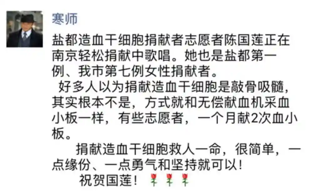 李海华、陈国莲是全国第四对无偿捐献造血干细胞的夫妇。2013年3月,夫妇二人同时成为中国造血干细胞捐献者资料库志愿者。2017年,4次获献血金奖的陈国莲,与一位素不相识的血液病患者配型成功,当年11月1日,陈国莲在李海华的陪同下唱着歌顺利完成捐献。