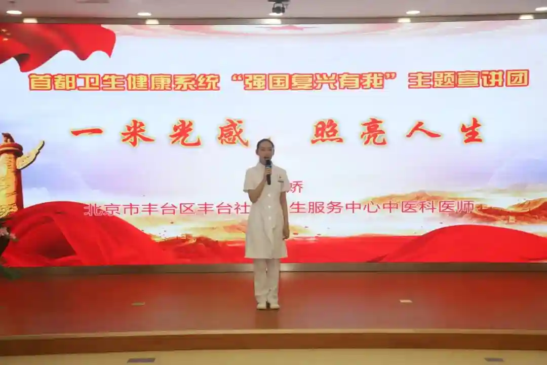 北京市丰台区丰台社区卫生服务中心中医科医师刘娇宣讲《一米光感,照亮人生》。李东柳摄