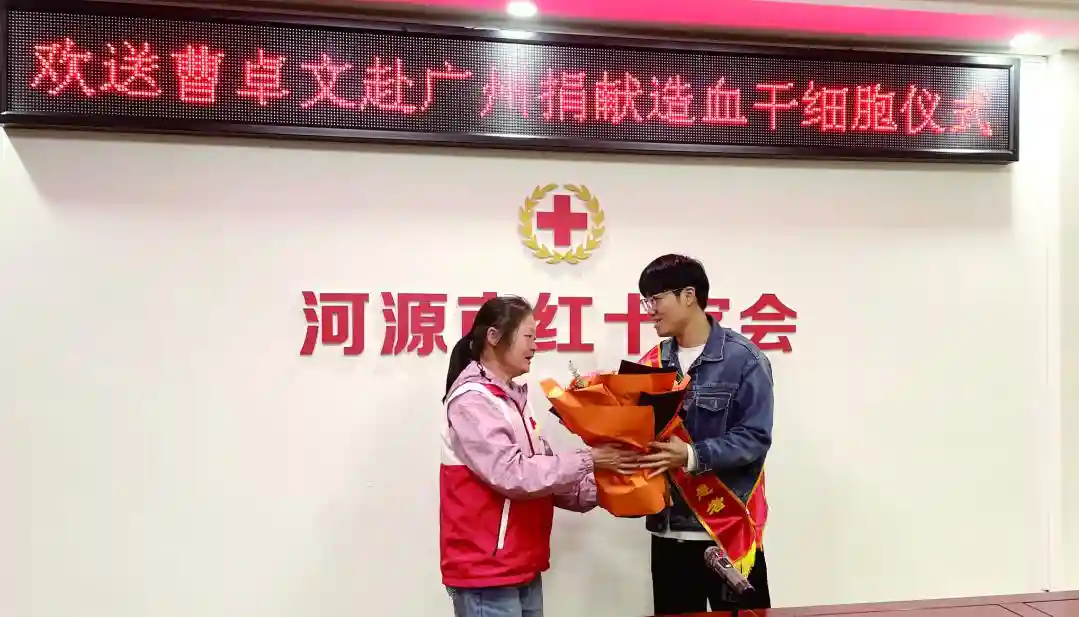 近日,河源又一例造血干细胞捐献者曹卓文赴广州进行造血干细胞捐献,市红十字会工作人员及志愿者为他举行了欢送仪式。据了解,曹卓文预计于3月19日采集造血干细胞,用于救助一名血液病患者。他是我市今年第2例捐献者,也是全市第24例造血干细胞捐献者。