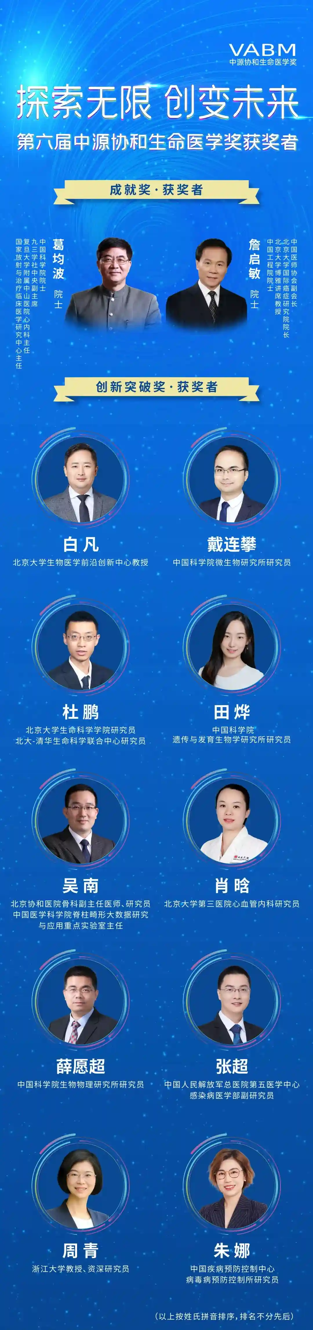 第六届中源协和生命医学创新突破奖(10位获得者,排名不分先后)