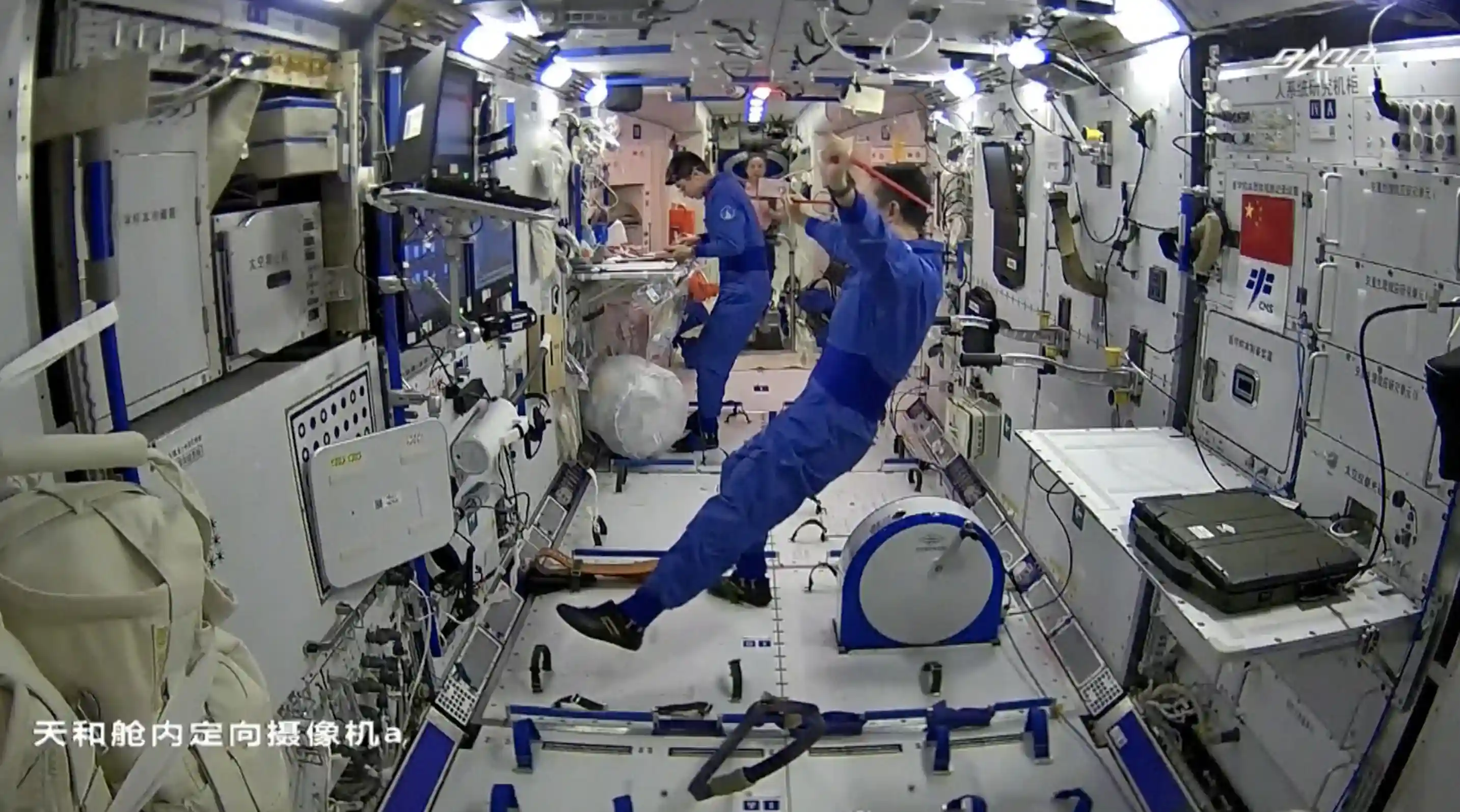 2021年12月26日,航天员叶光富、翟志刚身着“飞天”舱外航天服,先后从天和核心舱节点舱成功出舱,开展舱外作业。图/ICphoto