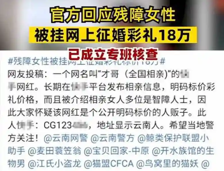 博主“才哥”(全网相亲)IP在云南等地运作,曝光了这一事件,引发了社会强烈的愤怒和关切。官方也已经出面回应,成立专案组进行调查,这是积极的一步,但也需要更广泛的社会监管和教育来解决这一问题。