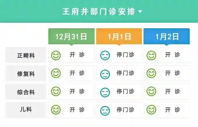 2023年元旦假期期间,北京口腔医院急诊综合诊疗中心(天坛部综合楼诊室)将24小时开诊。其它门诊安排如下: