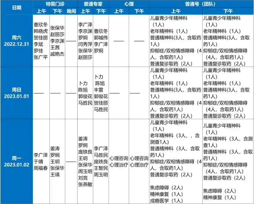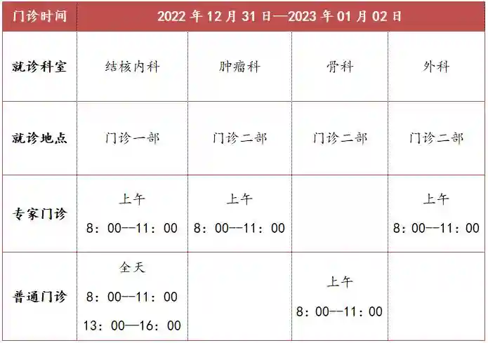2023年元旦假期期间具体出诊情况: