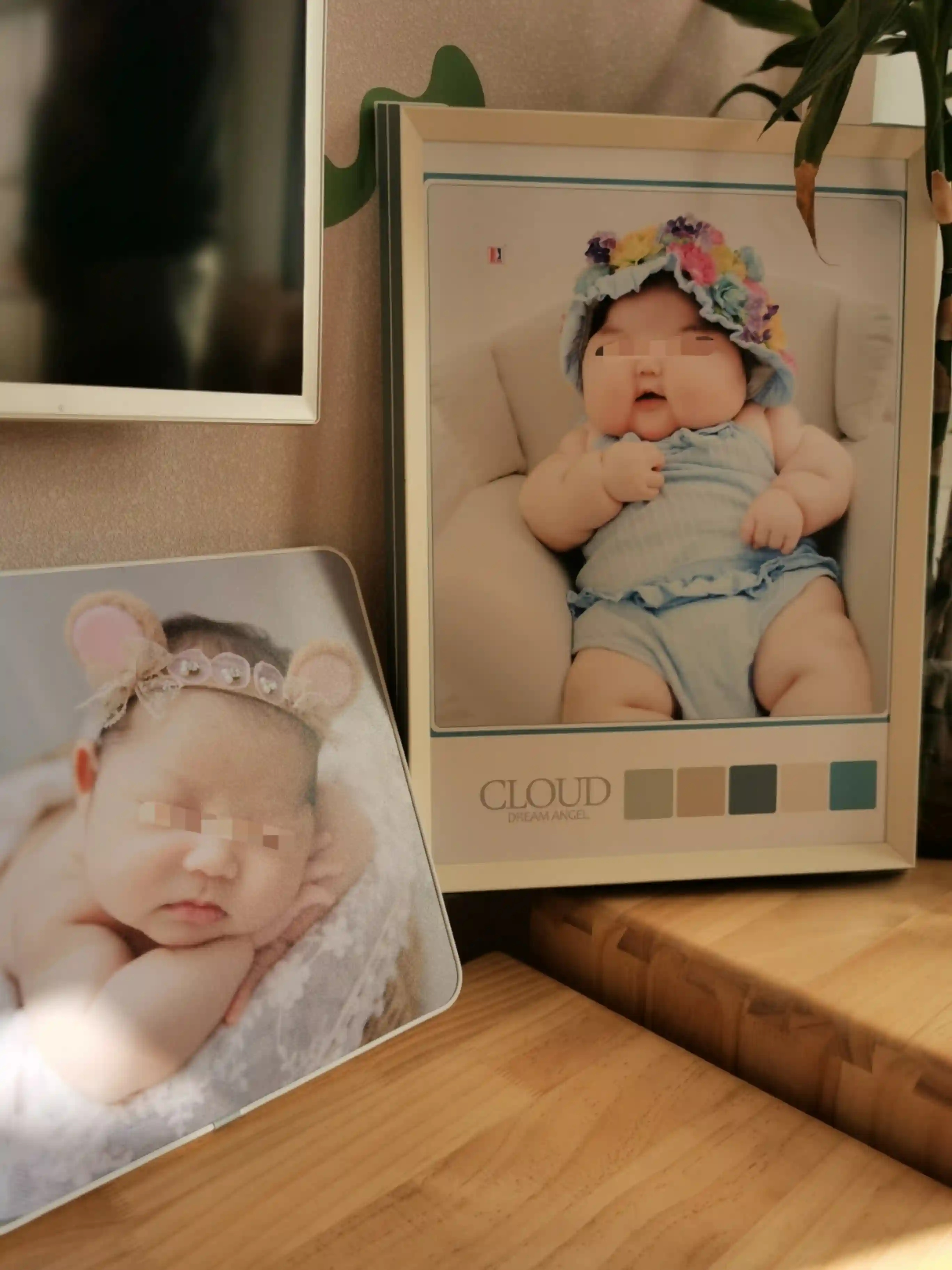 柚子满月时的照片与4个半月时的照片对比。新京报记者王瑞文摄
