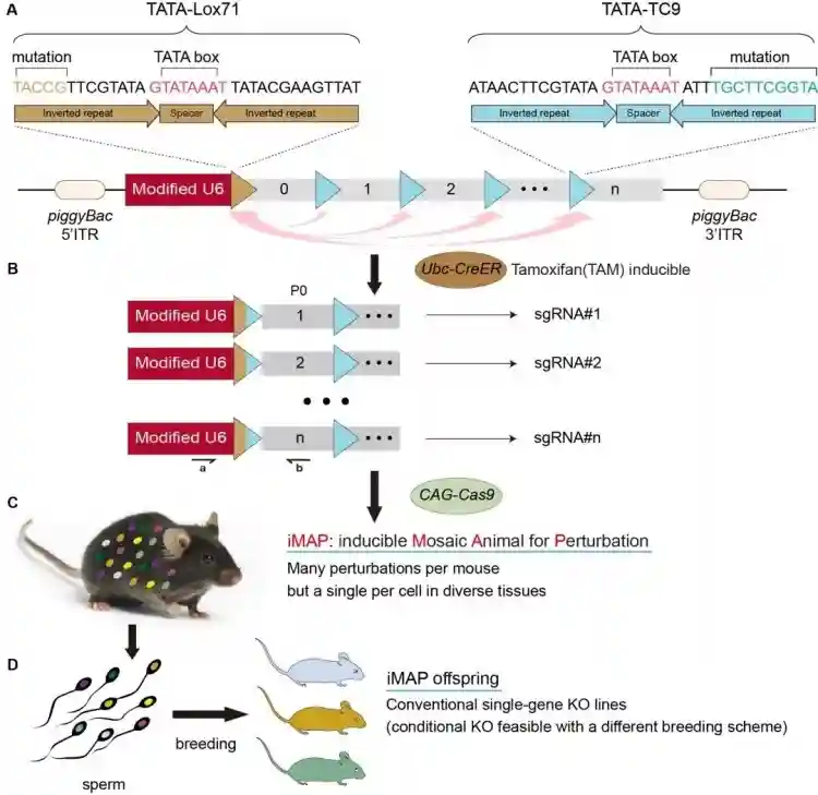 “21世纪生物医学的重要任务是解码人类基因组这部神秘天书。”池天教授表示,iMAP诞生的背后是一场长达八年、历经六届学生前赴后继努力的科学“马拉松”,研发过程充满了艰辛和曲折。研究团队首先构建了一个iMAP品系,它携带61个gRNA表达单位,共靶向6个功能已知的标志基因。该品系证明了iMAP的鲁棒性,包括展示转基因起码能稳定传13代。随后构建的iMAP品系携带100个gRNA表达单位,靶向90个功能不甚清晰的基因,以此构建了一个微型扰动图谱,揭示了这90个基因分别在39个组织/细胞中对细胞存活、扩增、分化的影响。不但如此,研究团队还证明,一个iMAP品系的确可以衍生出多个传统的单基因敲除品系。