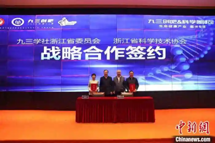 其间,九三学社浙江省委会与浙江省科学技术协会举行战略合作签约,推动各自的“九三创吧”和“科学咖啡馆”两个品牌开展合作,推动产学研用融合,助力浙江以科技创新塑造发展新优势。