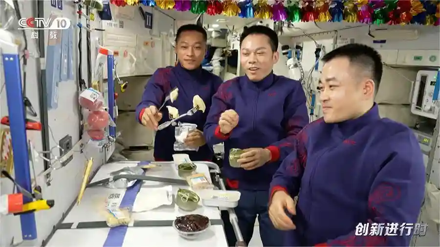 这次天舟七号运送的生活物资大约为2.4吨,主要包括航天员服装、食品等,除了米饭、面条、各种菜肴,还有饺子。其中,仅新鲜水果就将近90公斤。