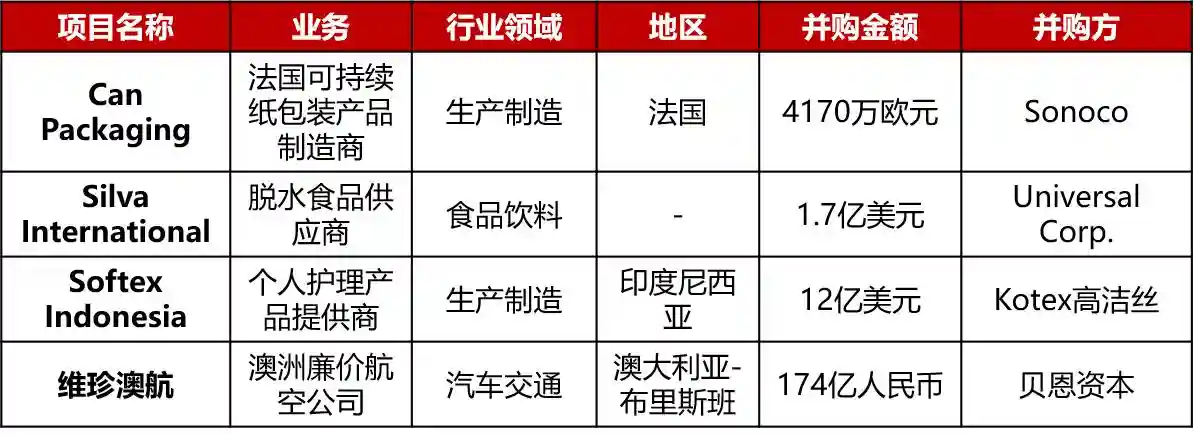 国外亿并购本周共有4起一亿美元以上的收购并购: