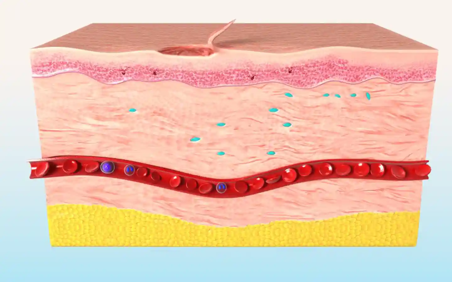 这种自我修复的能力主要依赖于两种细胞:角质形成细胞和干细胞。角质形成细胞构成着表皮的主要部分,它们持续分裂和更新,替代受损细胞,重建表皮的防护功能。