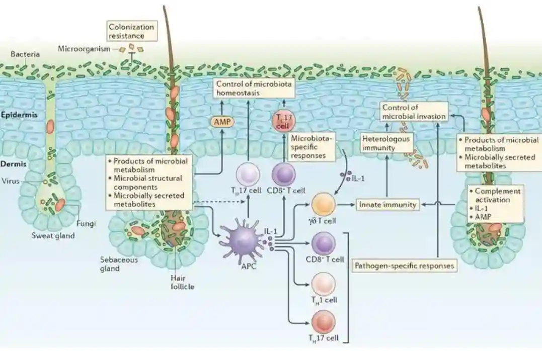 皮肤的免疫系统构成了一个复杂而精密的网络,包括朗格汉斯细胞、巨噬细胞、T细胞、B细胞、抗体、细胞因子等多种细胞和分子。它们相互协作,形成一个高效的防御体系。