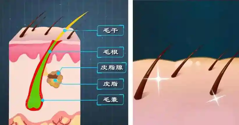它有助于调节体温,保护皮肤免受伤害,增强皮肤感知功能,甚至传达情绪。毛囊内还含有干细胞,有助于修复受损的表皮,促进皮肤的再生。