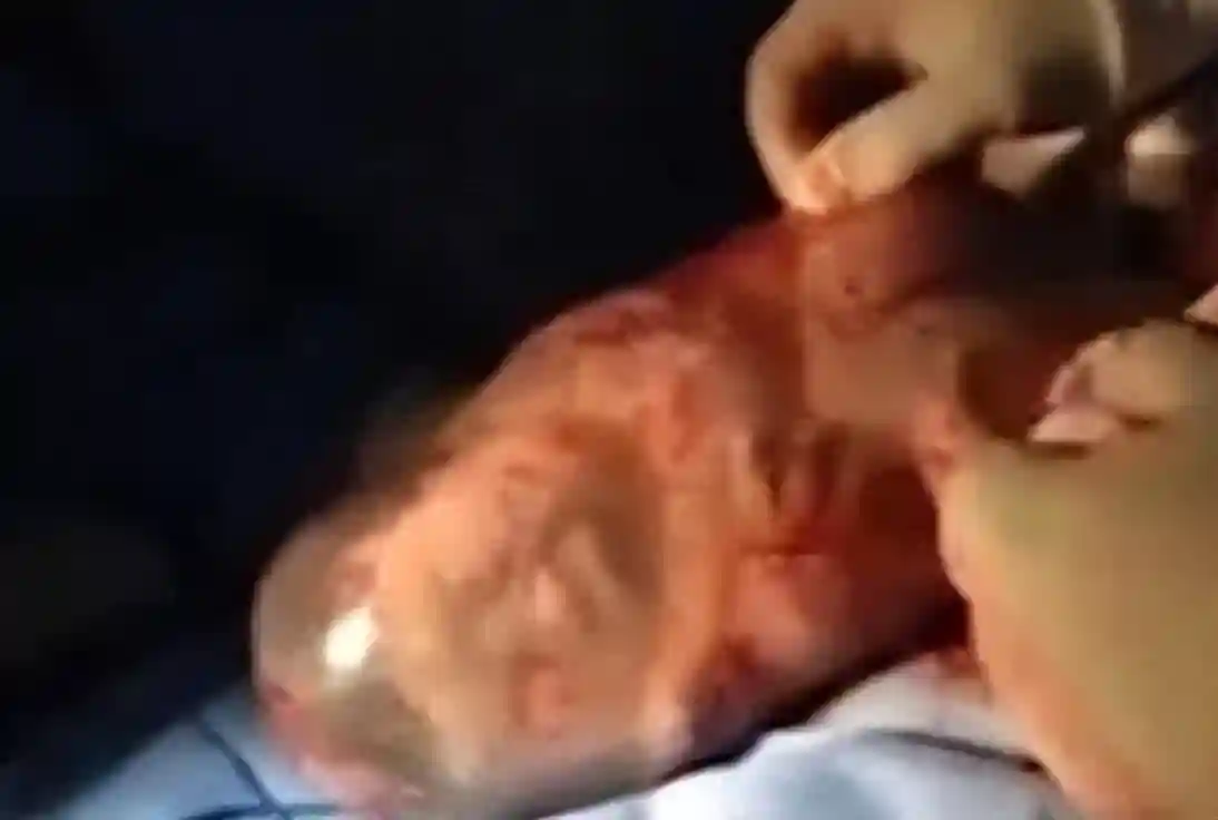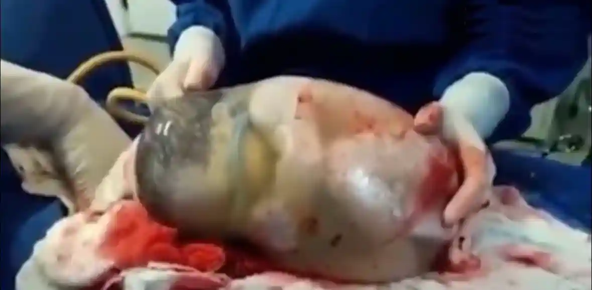医生先将羊膜戳开一个小口子,让空气流入。然后再小心翼翼拉囊袋,这个过程要非常轻柔,因为一不小心,可能就会伤害到宝宝。
