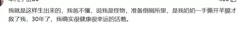 一位网友说,他小时候也是这样出生的,但那时候爸爸不懂,见自家孩子不一样,还以为是怪物,准备扔呢。