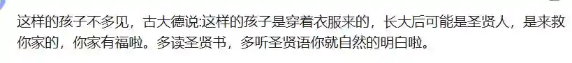 甚至还有网友翻出古言,说古人云,这样的孩子是“穿衣服”而来,不是寻常人,而是“圣人”。