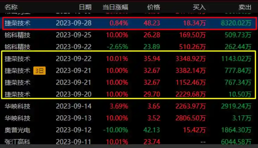这个操作简直就是复制了2023年的华为大妖股捷荣技术,怼了3天,锁仓3天,最后才大撤退,格局是拉满了。(当然,别太迷信游资,你把人家放心上,情况不对,人家反手就把你挂天上,还记得当年的和平路,现在不知道换哪个席位了)