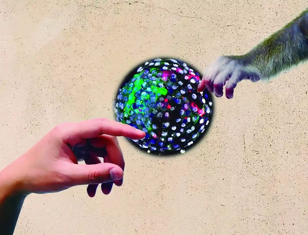 更令人惊叹的是,随着人细胞的注入,猴胚胎细胞在表达特征上变得像人细胞,同时人细胞也发生了相似的转变,变得像猴细胞。相较于人胚胎的正常发育过程,人—猴嵌合体胚胎的发育进程变慢了。