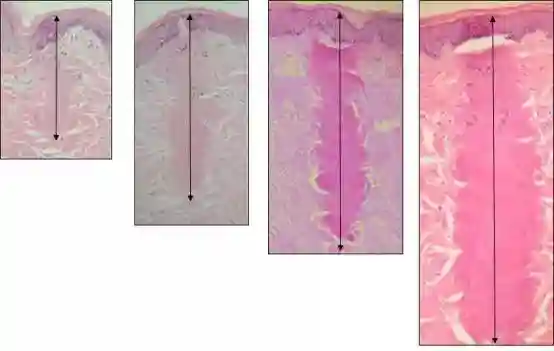 激光治疗疤痕不单单是热损伤后再修复,而是可以原位再生修复。皮肤原位再生修复的细胞学基础有两方面:一是皮肤附属器如大汗腺、小汗腺、皮脂腺及毛囊等;二是表皮的干细胞,在表皮的基底层大约有10%的表皮干细胞,另外毛囊的隆突部也富含表皮干细胞。激光刺激组织后,会释放出各种细胞生长因子,这些生长因子刺激干细胞的不对称分化,有利于表皮的生长。术后给予外源性生长因子、CGF、PRP、脂肪干细胞、外周血干细胞等也是为了更好的皮肤原位再生修复。另外细胞的活性需要很好的湿性环境,所以术后涂抹美宝湿润烧伤膏有助于原位再生修复。