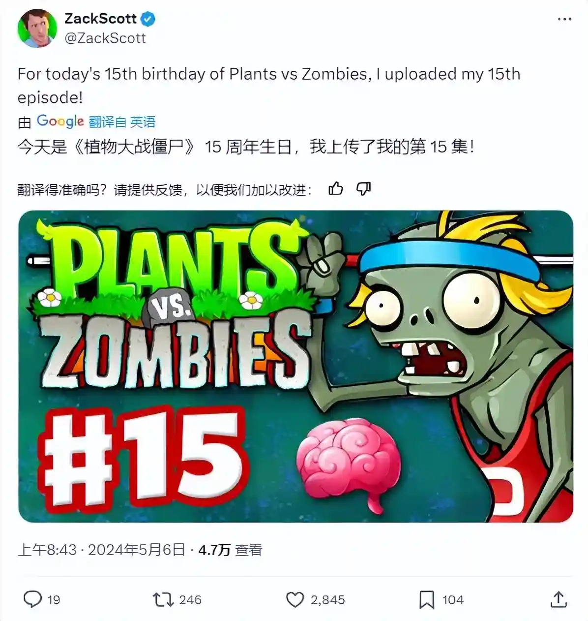 今年的5月5日,是《植物大战僵尸》(PVZ)初代发售15周年纪念日。