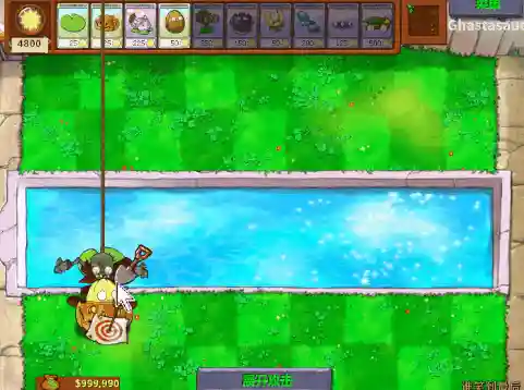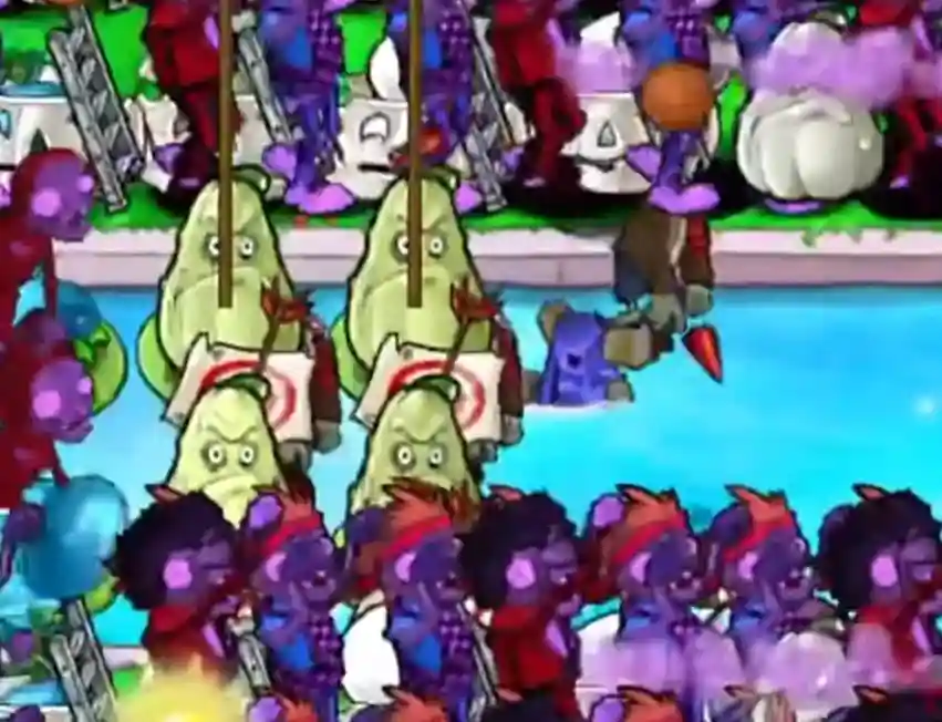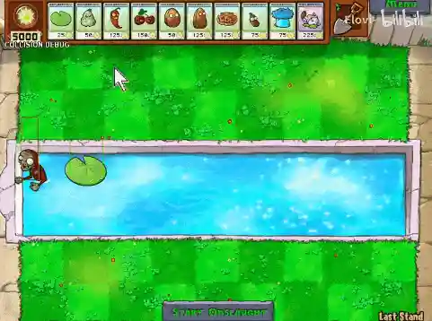 有人发现了另一个Bug来实现这一前提条件——在泳池最后一格通过逐帧操作放下荷叶,就能让海豚僵尸在走出泳池的那一刻卡在水面上,陷入永远的啃食动画之中。