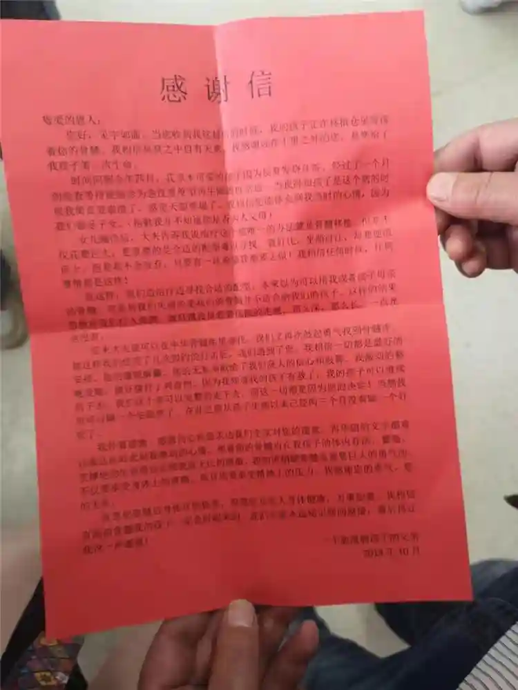 在感谢信中,交汇点记者了解到,此前,女孩也通过中华骨髓库曾配型成功,但捐献者后来毁约。在信中女孩的父亲写到:我感谢远在千里之外的您,是您给了我孩子第二次生命,我相信您能体会到我的心情,因为我们都是子女(报歉,我并不知道您是否为人父母),我怀着感激,感恩的心向您表达我们全家对您的谢意,再华丽的文字都难以表达此时此刻我激动、感恩的心情……交汇点记者朱鼎兆通讯员王树文陆雪川